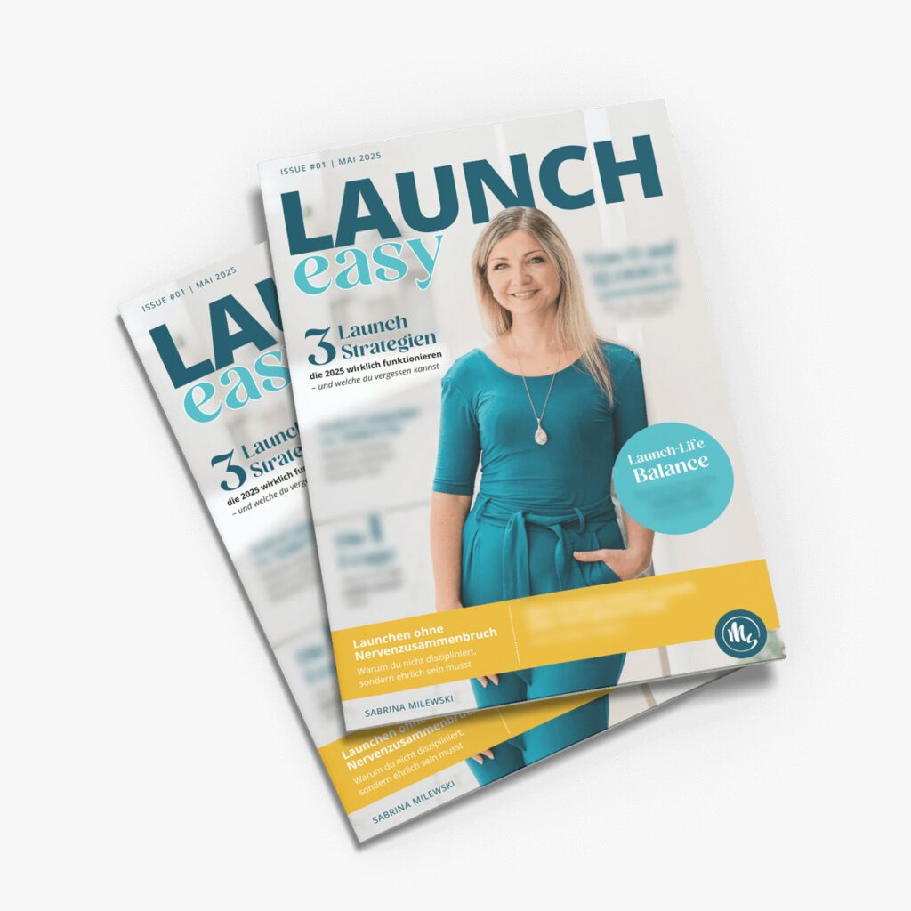 Als Leserin des Launch Magazins bekommst du ehrliche Einblicke, sofort anwendbare Tools & echte Erfahrungen von Frauen, die nicht nur drüber reden – sondern ihre Launches bewusst, strategisch & mit Persönlichkeit auf die Straße bringen.