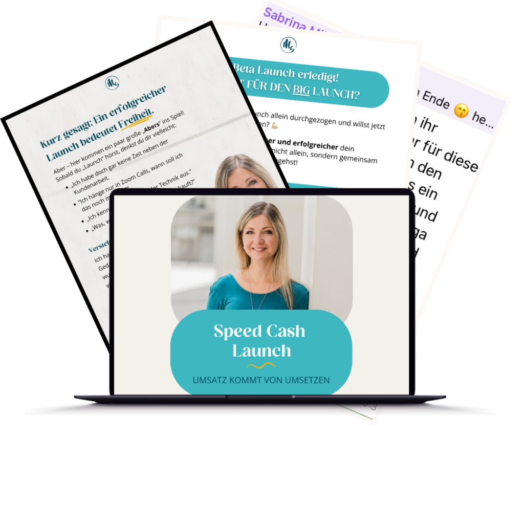 Die Plätze im Speed Cash Launch-Programm sind limitiert. Sichere dir als Wartelisten-Mitglied besondere Rabatte, Bonus-Inhalte und direkt umsetzbares Feedback von mir als Launch Expertin